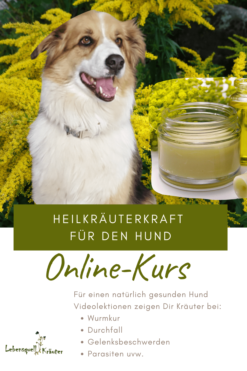 Lerne, welche Kräuter und wie Du sie anwendest. Z.B. im Onlinekurs "Heilkräuterkraft für Hunde"